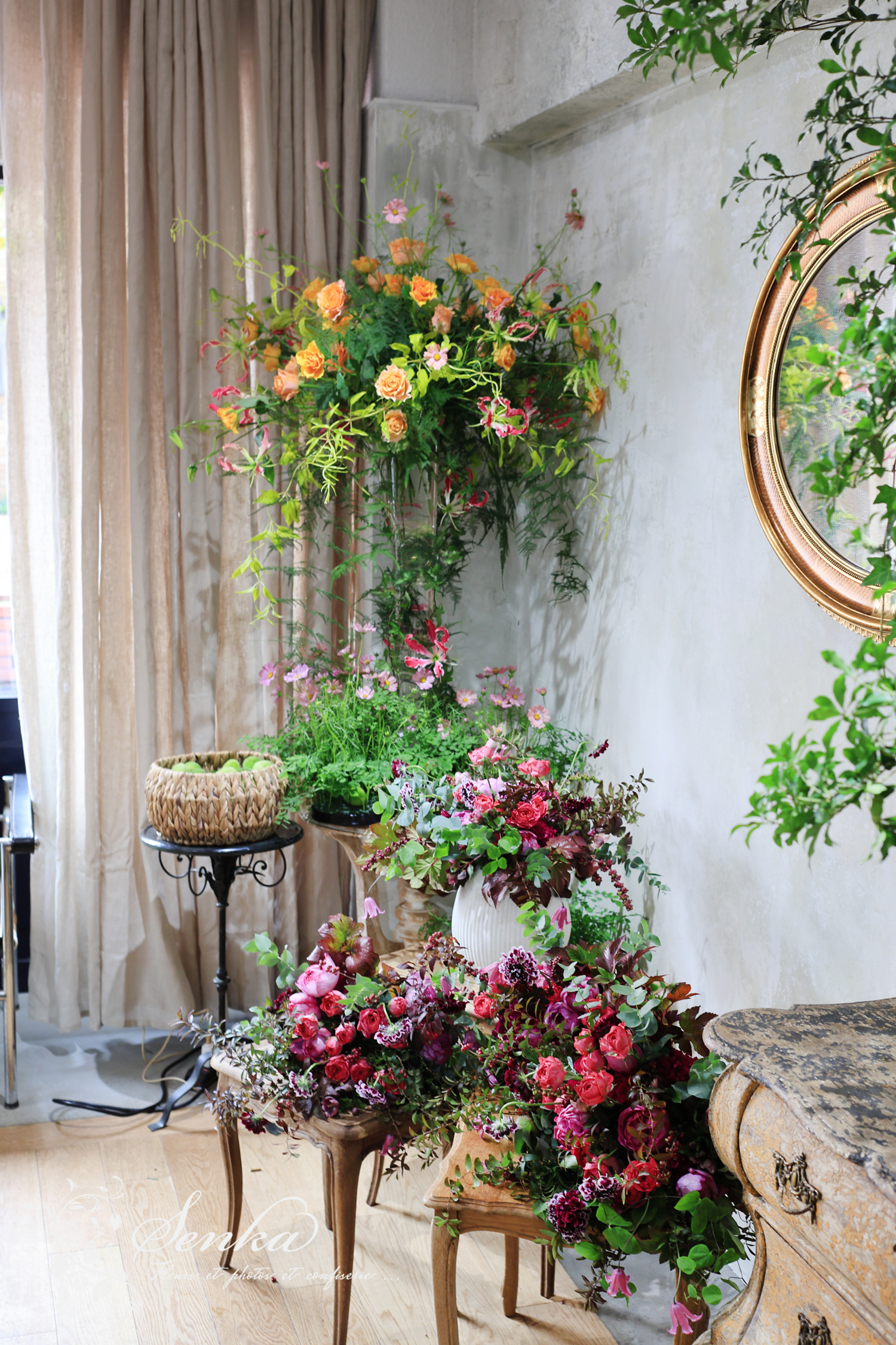 今回は、花好きな方々と「ブーケレッスン」に参加させていただきました。束ねたブーケを、装花された華やかな店内に飾り記念撮影!